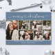 Modern Calligraphy Photo Collage Blue Christmas Card