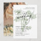 Modern Calligraphy Photo Sage Green Floral Wedding Invitation