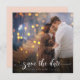 A Modern Calligraphy Photo Wedding Save the Date card is a charming and elegant way to announce your upcoming nuptials to your friends and family. This delightful card features a beautiful union of your favourite photograph and the artistic flair of calligraphy, creating a personalized and timeless keepsake that is both visually stunning and heartwarming. The design typically includes an eye-catching, full-colour photo of the engaged couple, which is tastefully accentuated by a graceful calligraphy script that shares the date and location of the wedding.