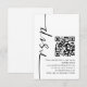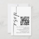 Modern Calligraphy QR Code Wedding RSVP, to enclose with your invitations, RSVP is in a set elegant calligraphy rotated and to the left, with your message to the right. Easily personalise the rest of the text to your own details and replace the sample QR code with your own simply by changing the sample url with your own which will be automatically generated.