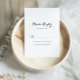 These modern calligraphy RSVP cards are perfect for a rustic wedding. The simple and elegant design features classic and fancy script typography in black and white.
