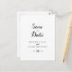 This modern calligraphy save the date postcard is perfect for a rustic wedding. The simple and elegant design features classic and fancy script typography in black and white.