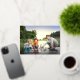 Holiday flat greetings card with these chic photo featuring your family name overlaid in silver foil handwritten calligraphy lettering.