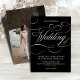 Modern calligraphy timeless silver black wedding invitation