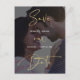 This modern save the date postcard features gold calligraphy and a faux vellum look. "Save our Date" is written in gold script and the couple's names, wedding date, and wedding location are written in white. The faux vellum allows the text overlay to stand out atop the vertical photo. On the back of the save the date, add wedding details such as the wedding website.