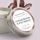 Modern product packaging round labels in elegant white and rose gold - perfect to use as a lid sticker for candle jars, tins or pouches. Featuring pink rose gold foil effect border and white background with modern serif type and space for your brand name. Add your scent names and make elegant stickers for your products. Edit in the design editor and reveal a few bronze gold script text options including 'scented candle', 'soy wax candle' , 'luxury candle' and 'handmade' which you can choose from.