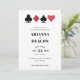 A wedding invitation for the modern couple, this invitation features clean and simple typography with a modern feel and a glitzy casino themed graphic of red glitter and black card suits making this the perfect choice for a lavish Las Vegas affair.