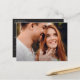 Modern stylish script elegant typography wedding save the date photo postcard. Modern minimal stylish design. Black and white monochrome colour can be customized.