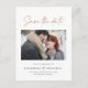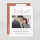 Modern stylish script elegant typography wedding save the date photo postcard. Modern minimal stylish design. Terracotta colour can be customized.