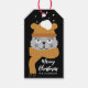 Modern cat Christmas gift tag. Easy to change the text. White typography on black background. Fun, modern cat design.