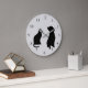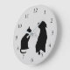 Modern cat and dog silhouettes, pets, sitting on light grey background clock.