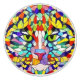 A colourful design for people who love cats, also great for kids' bedroom decor or for identifying the drawer belonging to your fave kitty. A brightly coloured feline face with green eyes, made up with many small shapes in different hues.