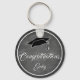 Simple and Modern Gray Chalkboard Congratulations Graduation Keychain with a graduate name, graduation cap and trendy white typography text Congratulations on dark gray chalkboard background. Personalize with your name.