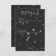 This wedding details card features a modern charcoal background accented with a white sparkle overlay to illustrate the magic of the beautiful winter night sky. Perfect for a Christmas or winter wedding. This card is part of the Modern Charcoal Black Winter Sparkle Wedding Suite created by Simply Farmhouse Press.