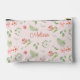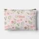 Modern Charming Pink Green Floral With Name Accessory Pouch