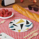 Modern, cheerful, fun, vibrant geometric pattern paper plate