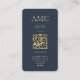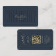 Modern Chemistry Monogram Chemist Dark Blue Gold business card with QR code