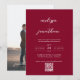 Modern Chic Burgundy Photo Script QR Code Wedding Invitation