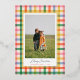 Send holiday cheer in style with this modern chic colourful plaid Christmas photo card featuring an elegant gold foil frame. Personalize the front with your favourite family photo and add a custom Christmas message on the back. Perfect for sharing warm wishes, this personalized holiday card combines vibrant plaid patterns with luxurious gold accents, creating a festive, contemporary, and elegant design ideal for friends and family.