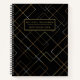 This modern design features a chic and stylish gold linear geometric pattern on a black background. Personalized with your name and additional text by editing the text in the text boxes provided #notebooks #stationery #personalized #name #personalizedstationery #home #office #work #school #gift #gifts #geometric #geometrical #personalizedgifts #custom #customgifts #stockingstuffers #masculine #feminine