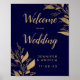 Modern chic gold navy blue branch wedding welcome poster