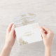 Modern chic gold palm tree tropical wedding all in one invitation, with details main invite and rsvp , featuring gold foil palm tree leaf and elegant script. Add your photo
