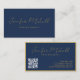 Modern Chic Navy Blue Gold Hand Written QR Code Business Card
