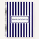 Modern Chic Navy Blue & White Vertical Stripes Notebook