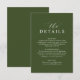 This wedding details enclosure card features white script typography on a olive green background. Its modern and elegant style makes it perfect for sharing information, event details, or other wedding notes. Simple, stylish, and easy to customize for any wedding theme.