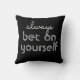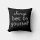 This modern chic quote pillow has text always bet on yourself text in bold black and white for home decor accent.