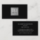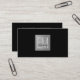 Elegant and professional modern chic black and silver business cards with a faux silver effect square monogram initial watermark and editable text on the back with your contact information. Simple, classic, and elegant silver and black business card template can be used to create your own timeless profile card for your business.