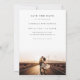 Announce your special day with our Modern Chic Rustic Photo Wedding Save The Date. This elegant card features a captivating photo of the couple against a romantic sunset backdrop, perfect for those seeking a blend of rustic charm and modern chic. Ideal for casual romantic destination weddings, this save the date card offers a luxurious boho feel with a minimalist design. The double-sided format and contemporary styling ensure it stands out, making it a perfect choice for classy, stylish couples. Highlight your love story with this unique and memorable save the date announcement.