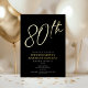 This modern 80th birthday party invite features a chic black background with raised gold foil script and flat white modern typography. The script says "80th". All of the colours are fully and easily customizable. You can even add a photo to the back! Just use "design tool" in the personalization drop-down menu. Raised foil is available in gold, silver, and rose gold. Choose real foil printing to add the wow factor to your next party invitations!