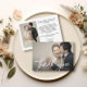 Introducing our "Elegant Chic Script Heart Wedding 2 Photos" – a sophisticated and personalized way to commemorate your special day. This design features an elegant script heart motif, space for two photos from your wedding, custom names with a heart in the middle, and personal message.