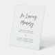 Minimalist in loving memory sign, features stylish modern script and text in black and white, simple and clean, great for bridal shower, wedding, birthday, graduation party, retirement party, funeral, etc.