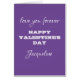 Modern Chic Script Nom Purple Valentines Carte de