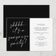 This modern surprise birthday party invite features a chic black background with white script on one side and modern typography for the text on the other side. The script on the front says "shhhh... It's a surprise party!". All of the colours (including the background and script) are fully and easily customizable. You can even add a photo to the back... Just use "design tool" in the personalization drop-down menu.