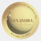 Modern personalized round return address label design featuring your name and address written on a faux gold sparkly background. The text can be entirely changed. To make adjustments, choose Personalize. To make more changes, such as altering the font, font colour, or text layout, use the Edit design tool.