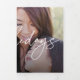 This chic holiday design features a large photo horizontal photo and script greeting which spans the entire outside of this tri-fold card. The greeting on the front says simply "Happy Holidays". As you fully open the card you see one photo on the left, one photo on the right, and in the middle there's lots of space to write a family newsletter. This design is the perfect choice to convey a warm, heartfelt message of holiday joy. The multi-photo layout allows you to upload a total of three of your favourite family photos.