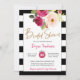 Modern Chic Stripe with Pink Flowers Bridal Shower Invitation