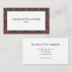 A chic personalised black, red and white tartan plaid square-patterned business card featuring an elegant charcoal grey border with a white nameplate. The nameplate can be used for your company or name details. The reverse has a crisp white background with contact details set in a slate grey text. Designed by Thisisnotme©