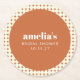 Add a fun and personalized touch to your bridal shower with these adorable coasters! The design combines a warm terracotta centre with elegant white text, framed by a playful cream geometric circle pattern that blends retro charm with modern style. Perfect for boho, rustic, or vintage-inspired themes, these coasters aren’t just practical—they’re a great way to elevate your table settings and tie your decor together. Use them while serving drinks in style, and they double as a thoughtful keepsake for your guests to remember the day. Whether it’s a casual brunch or a more formal gathering, these coasters bring personality and charm to your celebration.