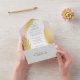 An improved version of the tri-fold invitation now with a tear away rsvp section. Featuring a modern design with tropical gold palm leaves over a soft pink background, combined with an elegant calligraphy typography, for a chic look. This all-in-one sustainable invitation would save you money, no need to include RSVP envelopes, your guests will tear away the last panel and mail it back to you as a postcard.