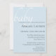 Modern and chic typography and diagonal white stripe baby shower invitation. Customize text, font style, colour and size. Background colour shown in soft baby blue can be customized to match your colour theme.