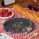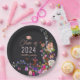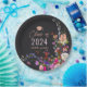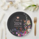 Class of 2024! Elegant modern spring summer flowers illustration with pretty wild flower and brush script graduation paper plate with a modern calligraphy typography with red, purple, pink , terracotta flowers on dark grey background