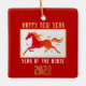 Modern Chinese Horse New Year 2026 Ceramic Ornament. A simple running horse painting for Chinese zodiac horoscope animal for 2026. It captures the spirit and motion of the horse. Warm red and gold accents symbolize the fire element.