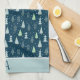 Modern Christmas Forest Trees Monogram Blue Green Kitchen Towel
