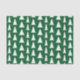Modern Christmas pattern tissue paper features white geometric trees in varying sizes on a green background. Perfect for the holidays.