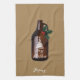 Modern and fun Christmas kitchen towel for those that love beer, pubs, breweries and home brews... Simple brown growler jug with white "Merry Christmas" message and a sprig of holly at the handle. Personalize with name or monogram.