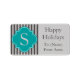 Use these elegant custom Christmas gift label stickers to finish off your presents this year. These Holiday gift tags feature a grey monogram initial on a turquoise blue background with contemporary grey stripes. The default text says, "Happy Holidays", "To: (Name)" and "From: Santa". You can customize the names, initial and text on the product order page.